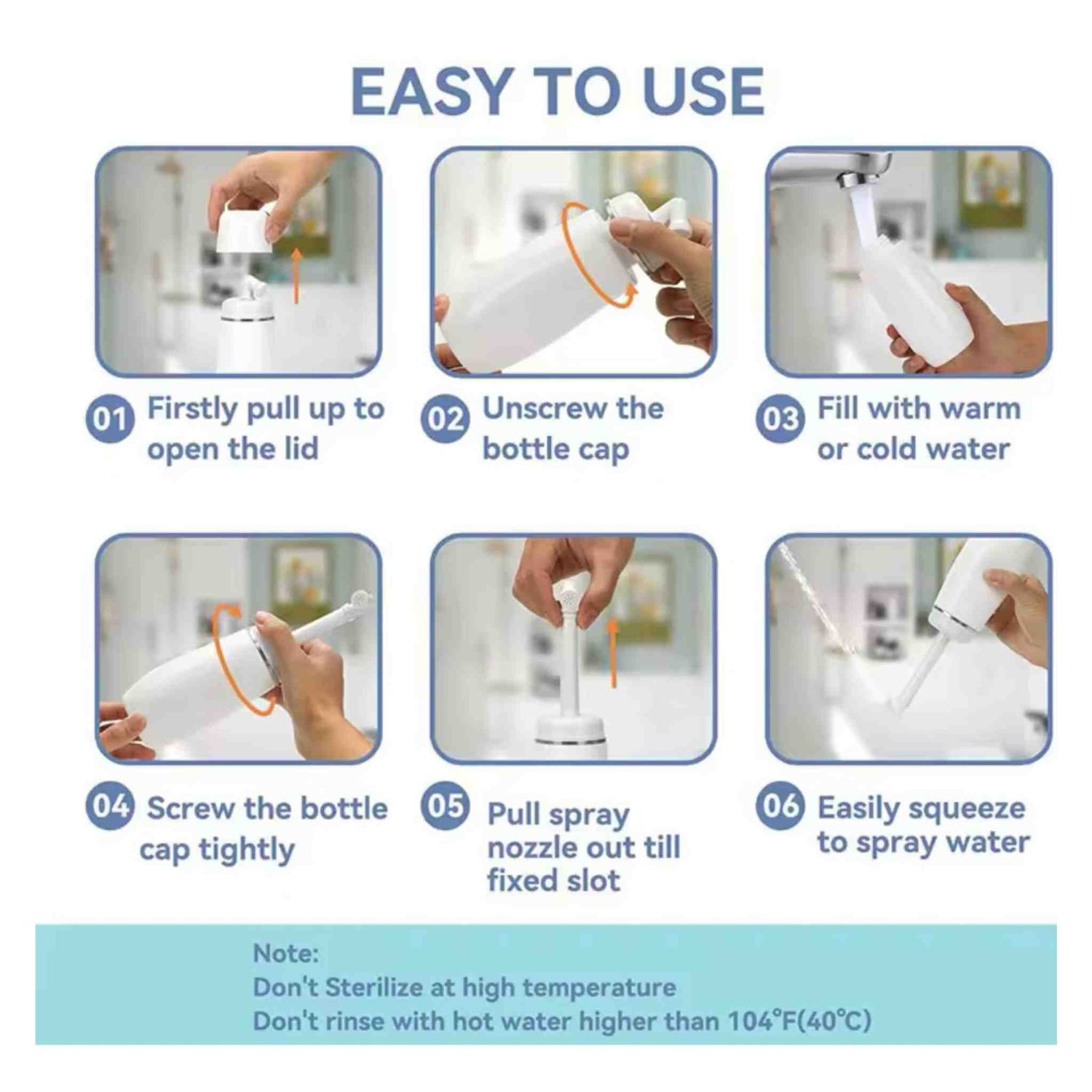 Portability: Designed for travel, this compact bidet features a 400ml (13.5oz) capacity, making it easy to carry and ensuring you can maintain your personal hygiene no matter where you are.