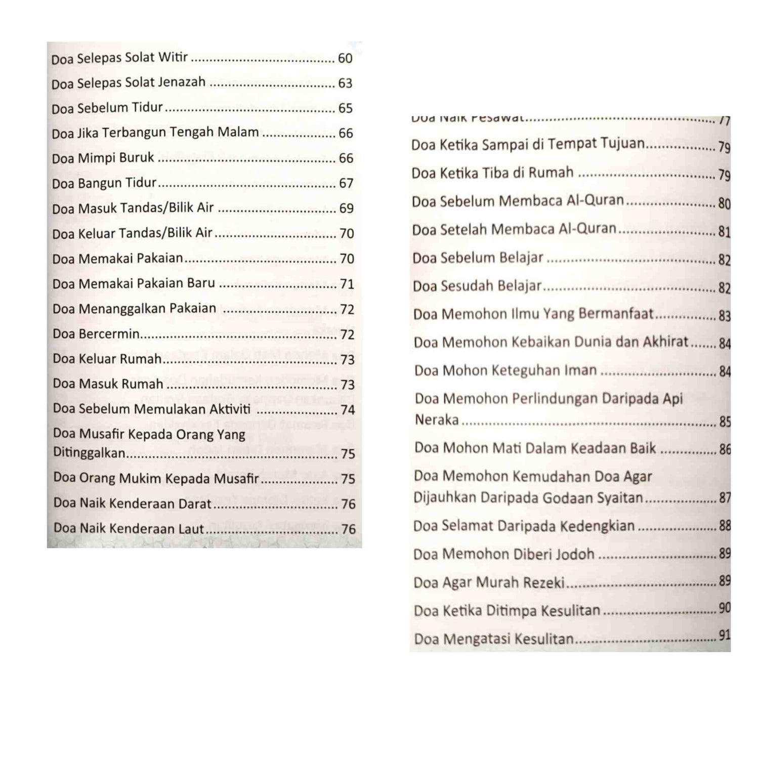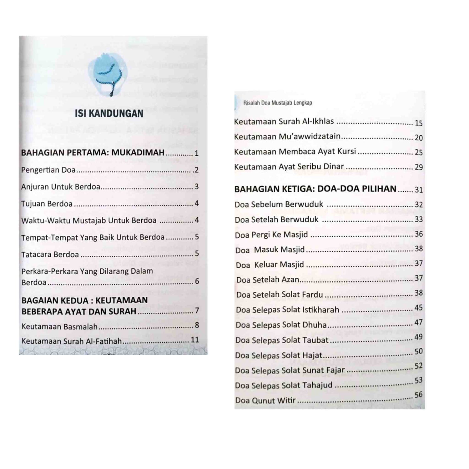 Overall Impression: Risalah Doa serves as a valuable resource for Muslims seeking a comprehensive collection of supplications rooted in Islamic tradition. It not only provides a diverse array of prayers but also reflects the spiritual depth and cultural richness of Islamic heritage. The inclusion of prayers from dreams and the emphasis on the Asmaul Husna add a unique and personal dimension to this compilation.