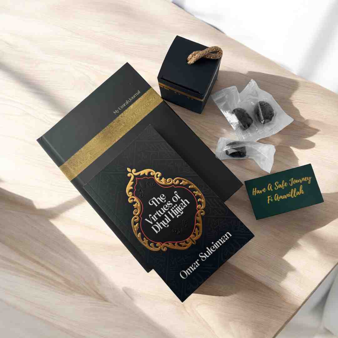 “The Virtuous Ten” is a gift set curated to help you reflect, act, and connect deeply with these sacred days. Whether you’re observing from home or accompanying loved ones on their journey, this set offers spiritual guidance, mindful reflection, and a sweet Sunnah treat to uplift the soul.
