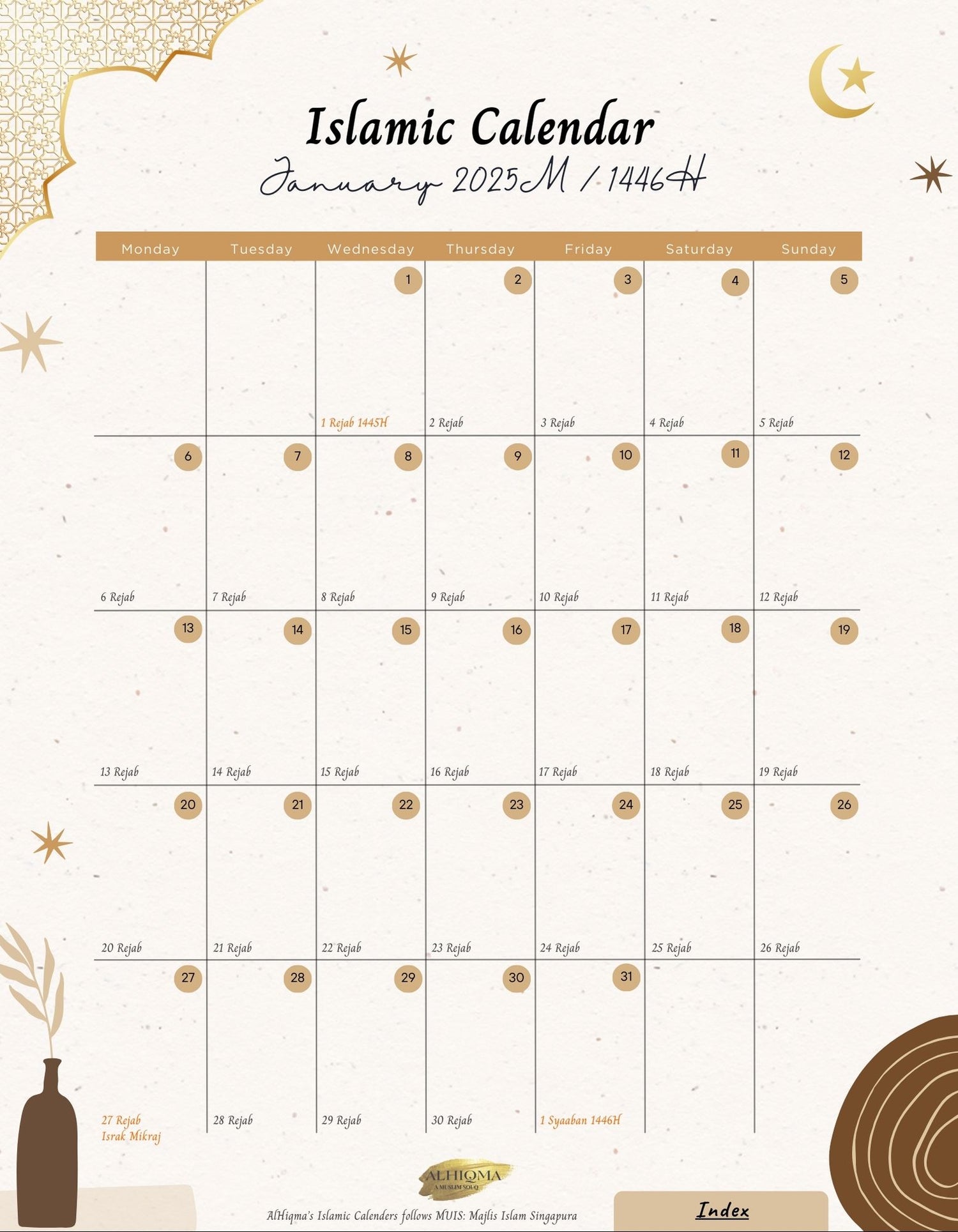 Featuring AlHiqma’s Islamic Calendar aligned with the MUIS (Majlis Ugama Islam Singapura) calendar, ensuring you never miss important dates or events.