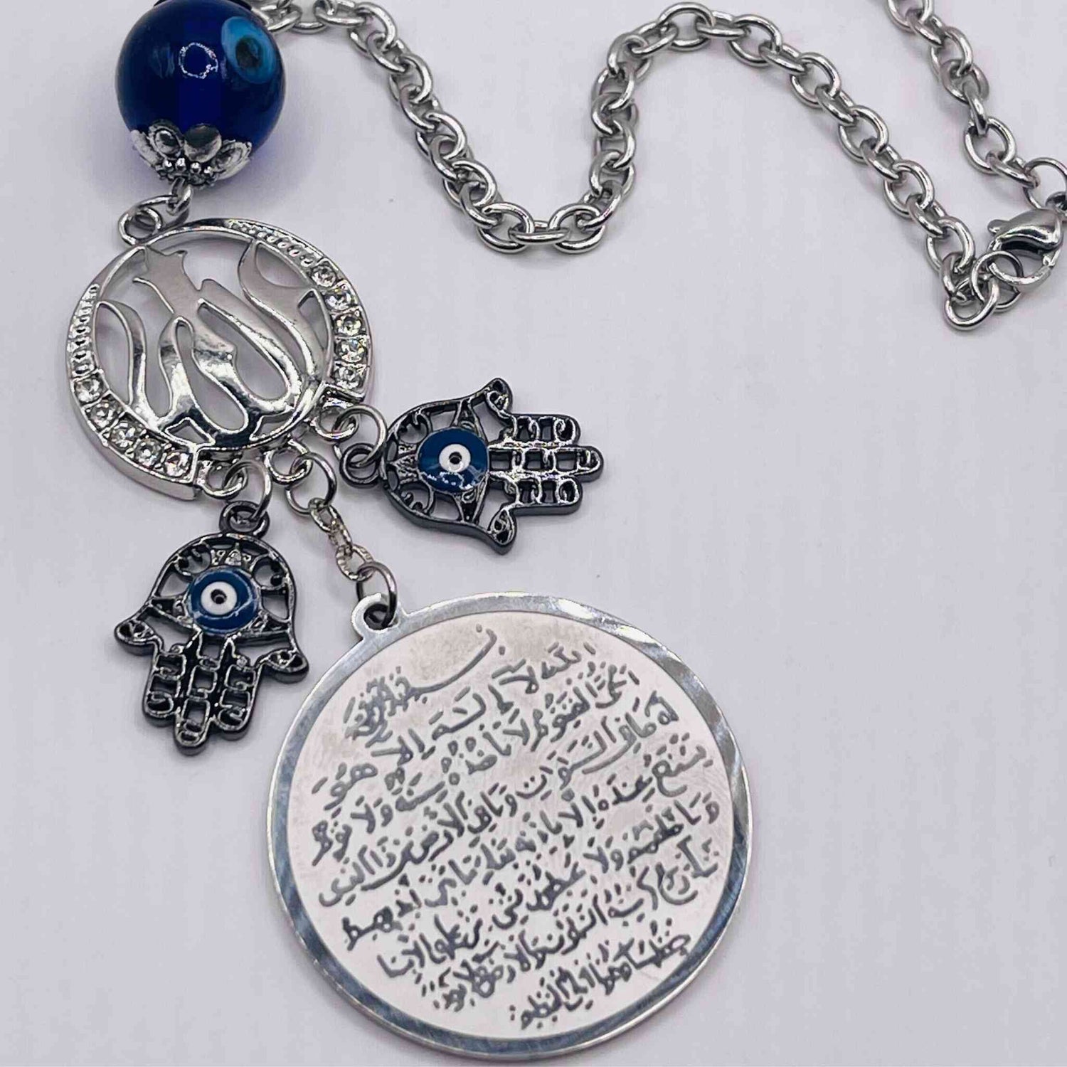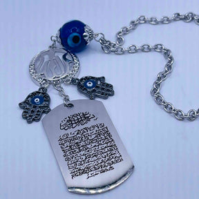 A Stainless Steel Ayatul Kursi Necklace designed as a pendant for a car's rear-view mirror is a wonderful way to carry a piece of spiritual significance with you while driving. Ayatul Kursi is a well-known and powerful verse from the Quran, and having it as a pendant in your car can serve as a source of protection and a reminder of faith.