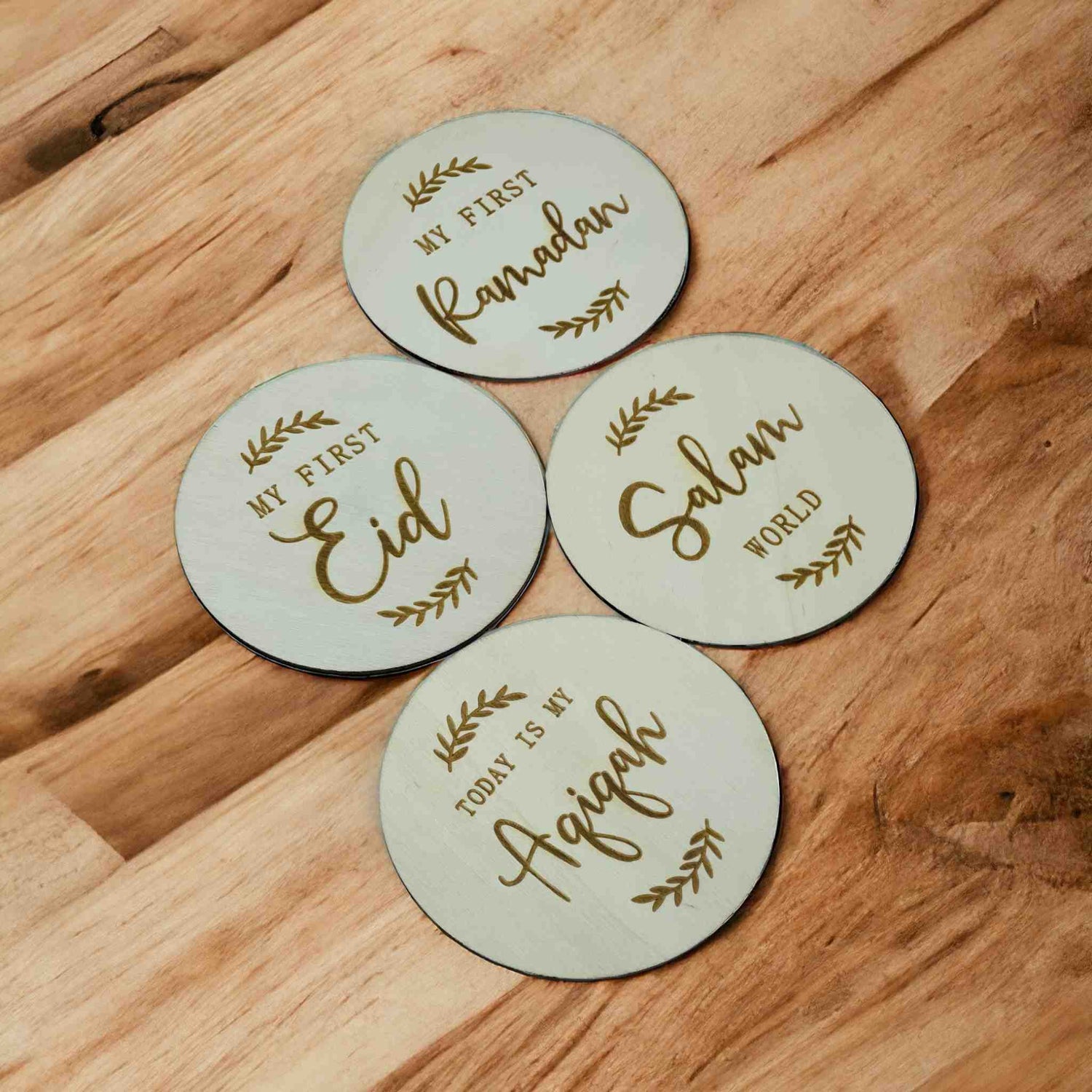 -Sixteen Islamic Baby Wooden Milestone Cards
