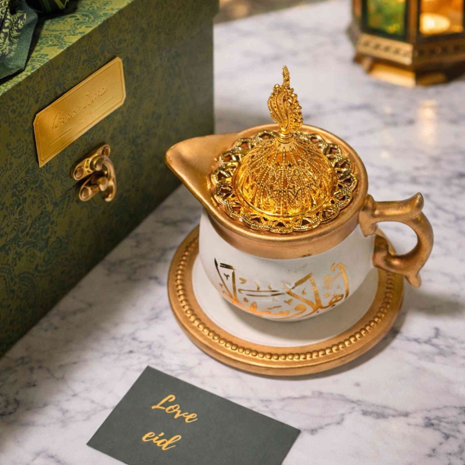 Exclusively curated by Al Hiqma, this elegant bukhoor gift set brings warmth, serenity and barakah to every home. Inspired by the comforting scent of Rawdhah Al Nabi, this set is perfect for welcoming guests during Eid or gifting to loved ones.