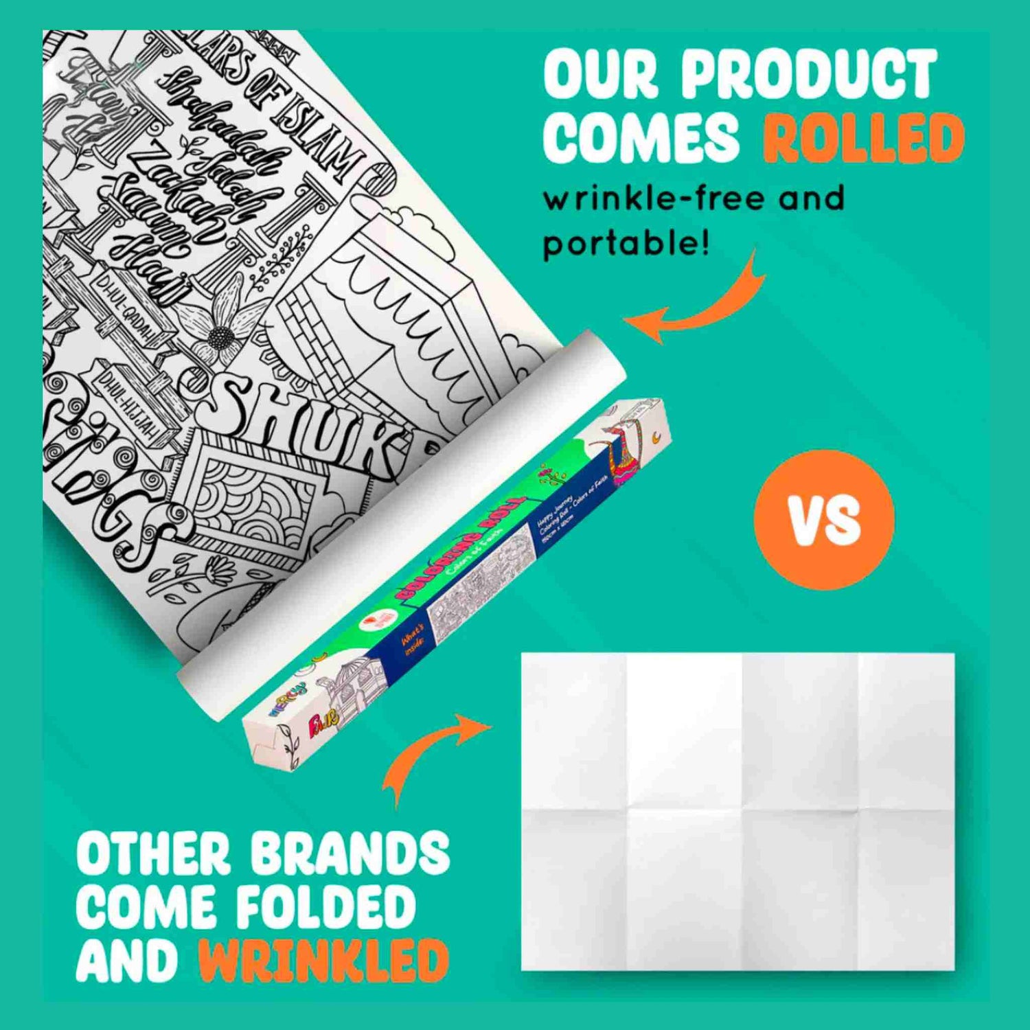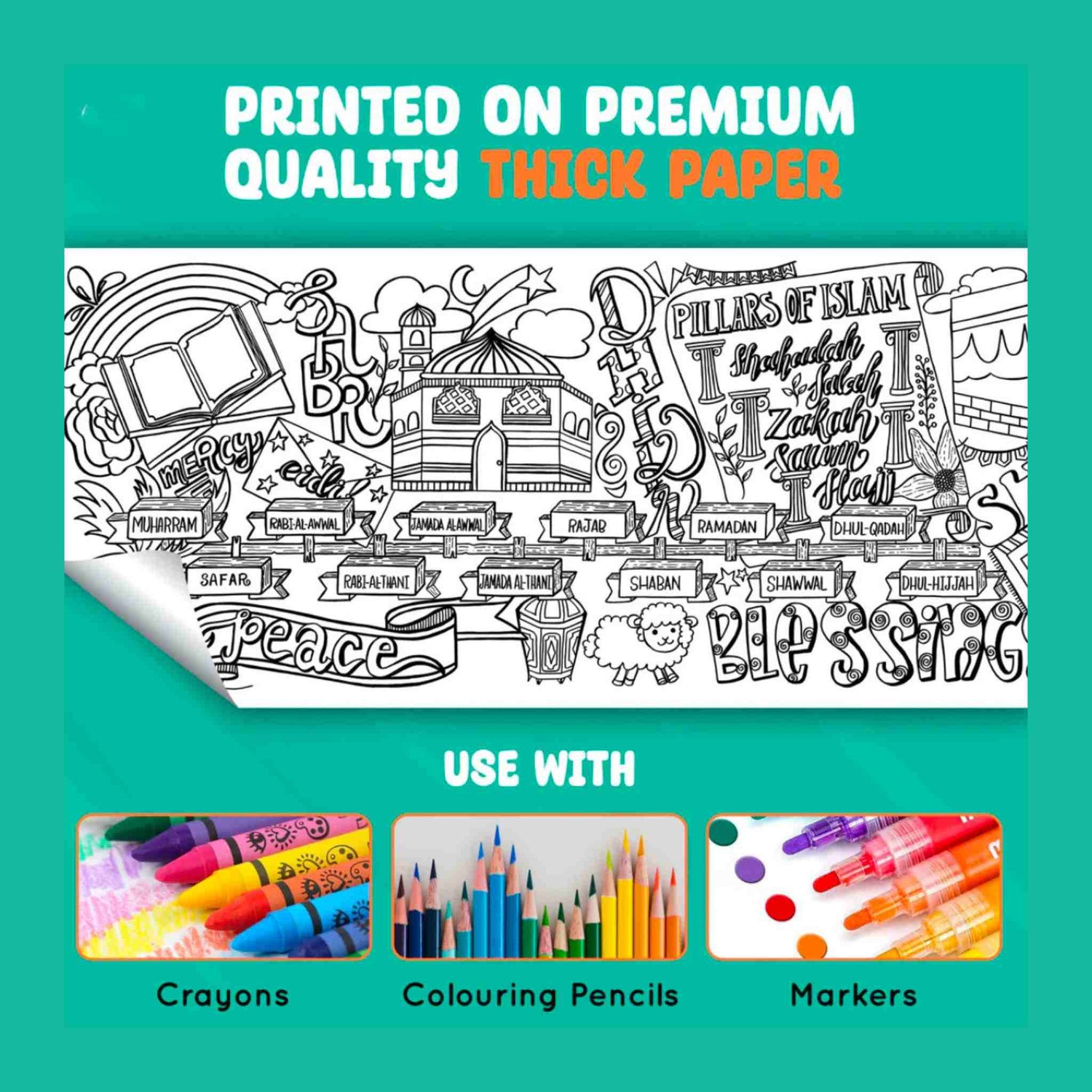 Spark creativity and strengthen Islamic learning with the Colors of Faith Coloring Roll! 🌟