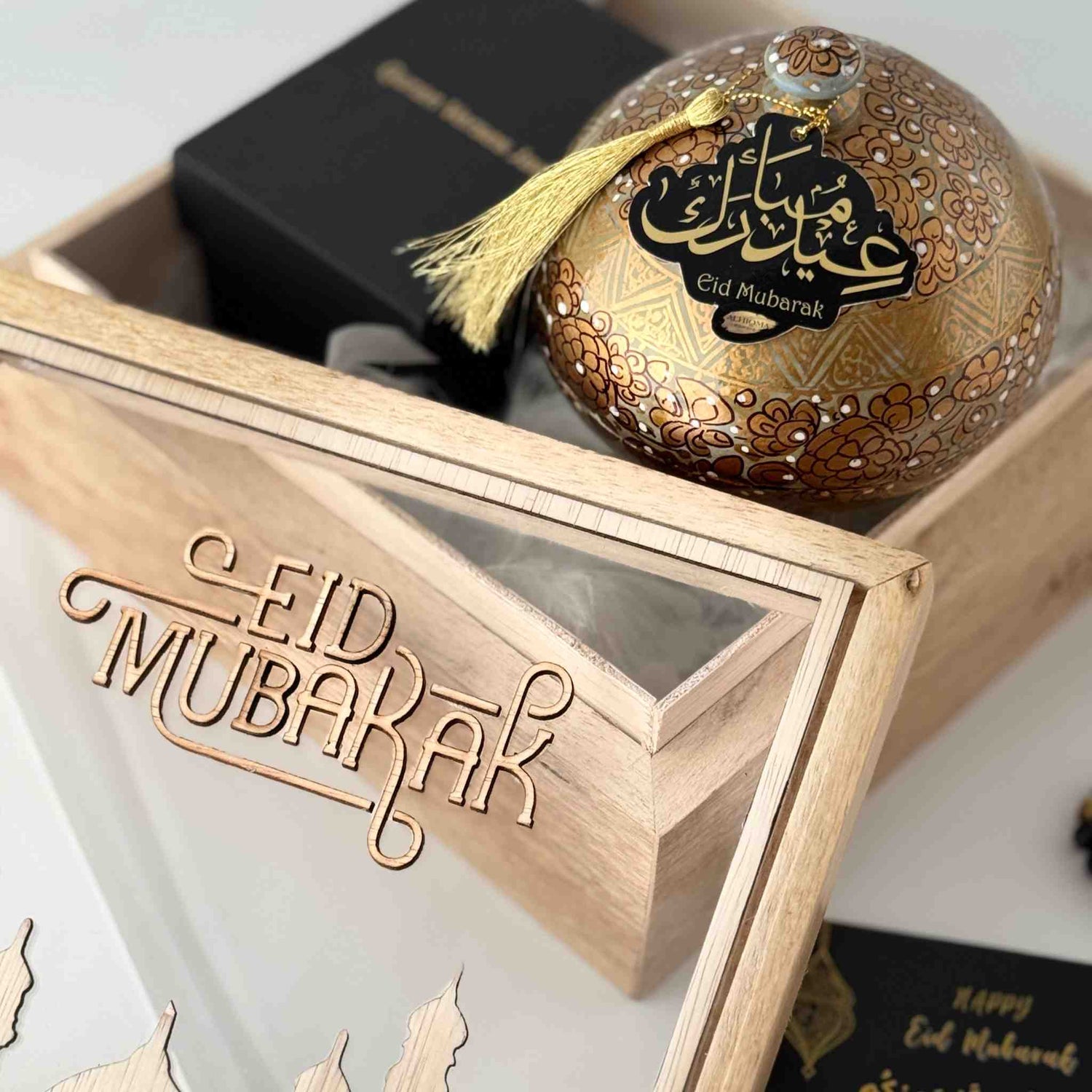 🎁 Eid Mubarak Wooden Box – A timeless keepsake, perfect for gifting and storage.