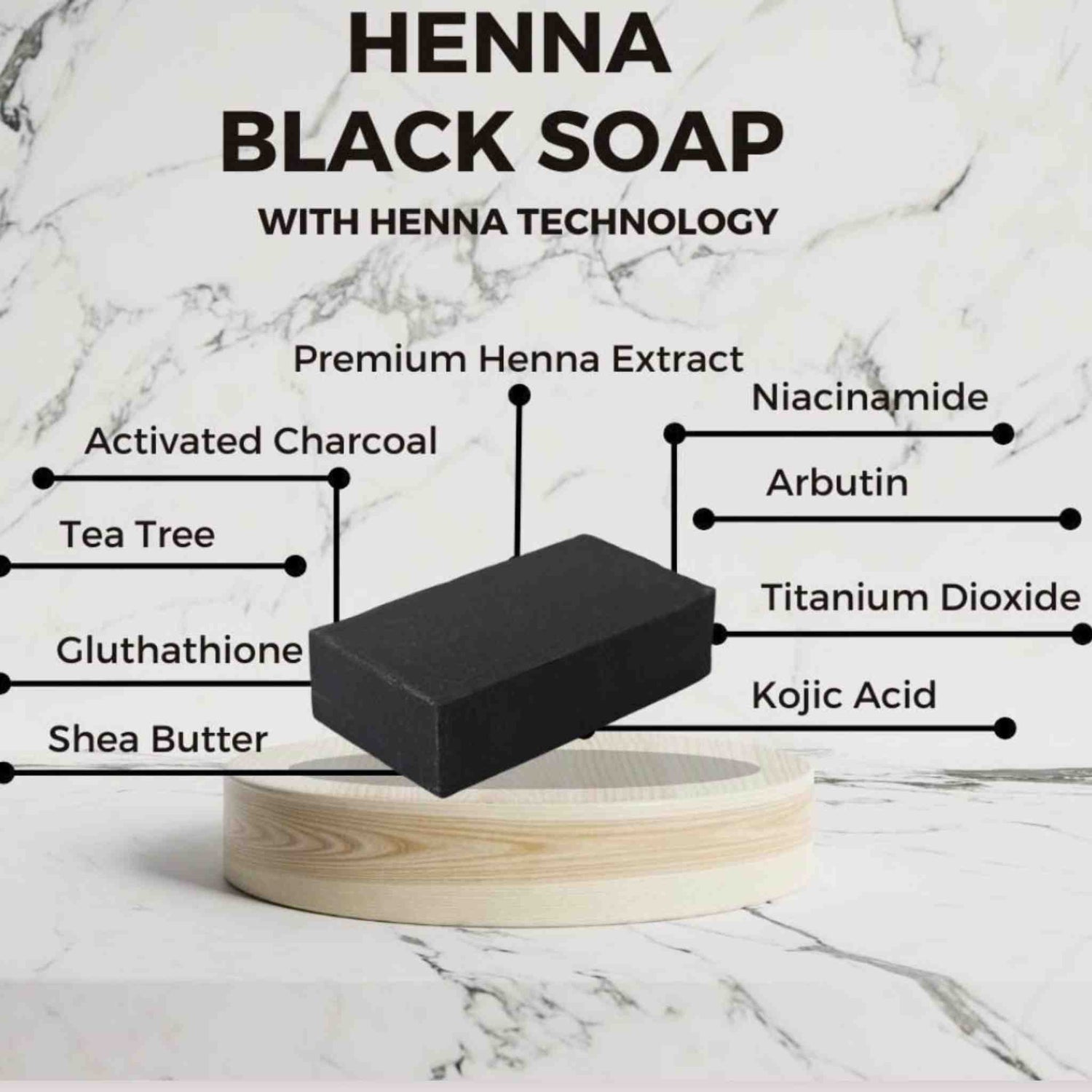 Indulge in our 100% Premium Henna Black Soap, enriched with activated charcoal. This natural soap offers multiple benefits for face and body care, effectively cleansing, minimizing pores, brightening skin, combating acne, reducing scars, and providing anti-aging, antibacterial, and cooling effects. Crafted with premium ingredients, it suits all skin types, free from harsh chemicals, artificial colors, and fragrances, ensuring a gentle and safe skincare experience.